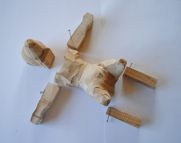 Kroppen och låren har grovformats. Nu tillkommer de andra delarna som noga passas in och