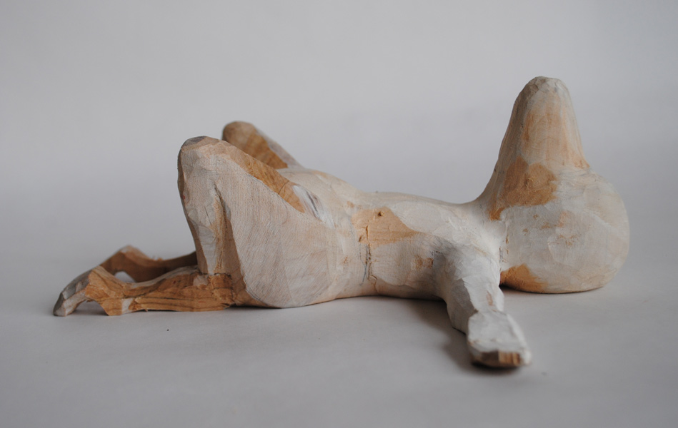 Jag närmar mig försiktigt den tänkta formen. Då och då under arbetets gång vitmålar jag för att bättre se hur jag ska gå vidare.
